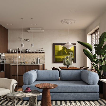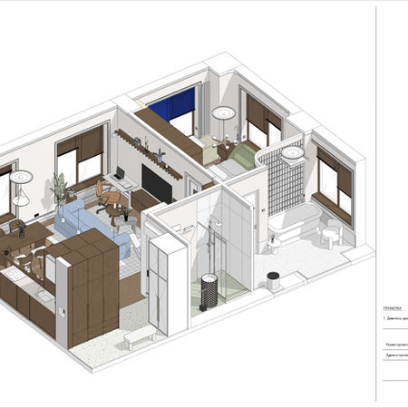 Проєкт квартири для молодого подружжя в центрі сучасного міста. Затишний простір для двох. Власниця - любителька театру та мистецтва, поціновувачка предметного дизайна. Власник - айтівець, що цінує практичність. Тому цей інтер'єр - гармонійне і пристрасне лавірування між естетикою, функцією і бажаною естетикою . Особлива увага до майстер-ванної.