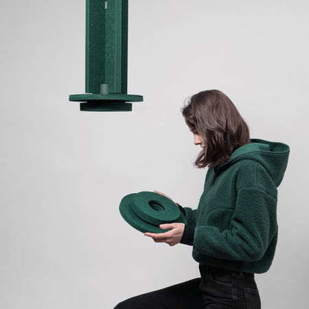 The non-woven recycled polyester “PET-felt” we choose to work with results from processing plastic.