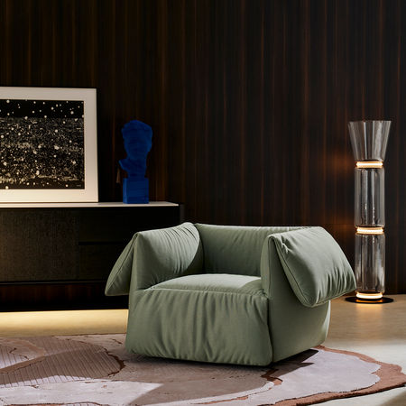 Колекція м’яких меблів Lavishly Box нагадує картонні коробки. Це сміливий дизайн вишуканих інтер’єрних об'єктів, що викликає дисонанс і не залишає байдужими. Концептуальна ідея для сегменту м’яких меблів, яка поєднує потужну філософію з комфортом і ергономікою.