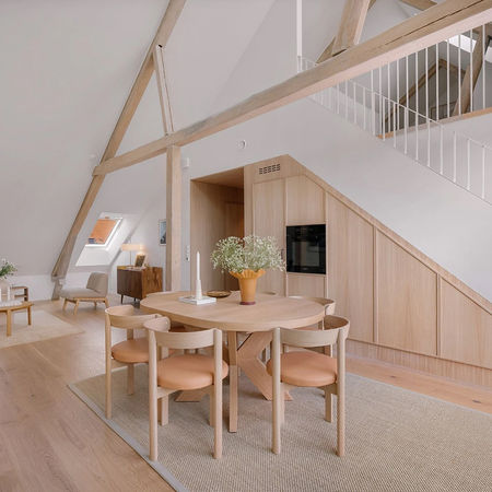 Magnus — це концепція сучасного життя під дахом старого будинку в самому серці Осло. Це реновація горищного приміщення, де архітектори IK залишили відкритою автентичну кроквяну систему, зробивши її ключовим елементом інтер’єру. Дерево в меблях та оздобленні підкреслює конструкції й додає простору тепла та характеру. Ми працювали з контрастами: груба фактура дерева поєднується з лаконічними лініями сучасних рішень. Простір отримав нову енергію, залишаючись водночас щиро пов’язаним із минулим. Magnus — це про силу форми, світла та історії, яка залишається відчутною навіть у новому житті старих стін.
