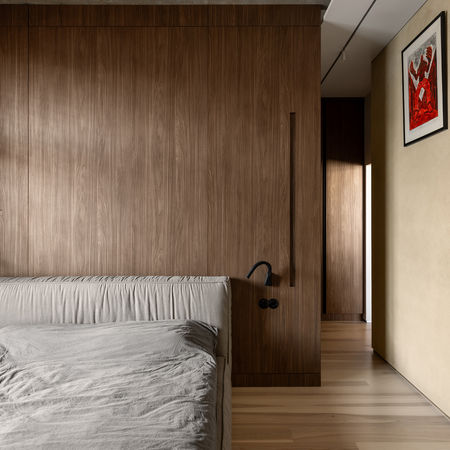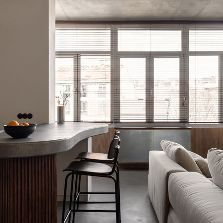 Квартира для сучасного чоловіка. Мінімалізм без холоду, лаконічність без нудьги. Барна стійка, що хочеться обійняти, подільський килим, прихований бар і безліч деталей, що створюють атмосферу свободи. Мікроцемент, відкритий бетон, шпон і меблі українського виробництва.Спальня з гардеробом, галерейною стіною, місцем для велостанка і балконом для кави. Санвузол — мікроцемент, стара австрійська цегла, нержавійка й освітлення під будь-який настрій.Проект, де мінімалізм — не про порожнечу, а про зміст.