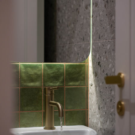 В інтер’єрі були використані пастельні зелені, рожеві, бежеві відтінки та тепле дерево.