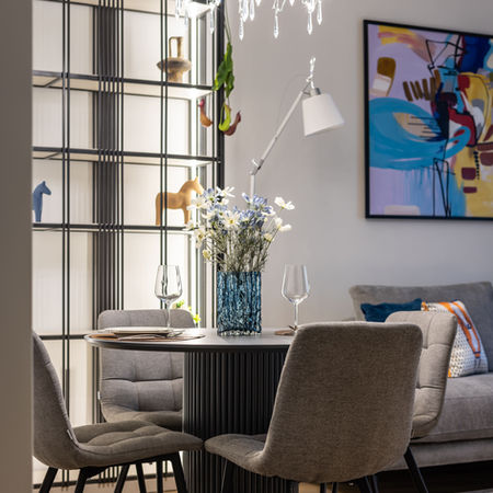 При роботі над проектом «Pоrtal fоr rent» ключовим моментом виявилося зонування. Завдяки грамотному підходу навіть на порівняно невеликій площі вдалося розмістити повноцінну кухню з обідньою зоною, куточок для відпочинку та окрему спальню.