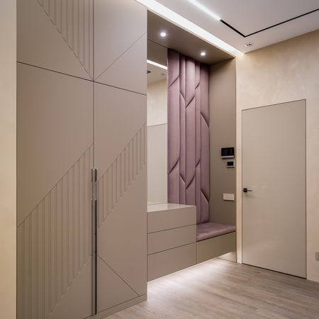 Площа 160м, розташована в серці міста в ЖК Феодосії. Квартира-мрія для дизайнера. Мене обмежували лише несучі колони. На цій площі я розмістила спальню господарів з гардеробною, дитячу, кімнату старшої дочки з гардеробною, два санвузли, велику загальну вбиральню, передпокій та . звичайно ж, студійну зону – кухню з вітальнею.