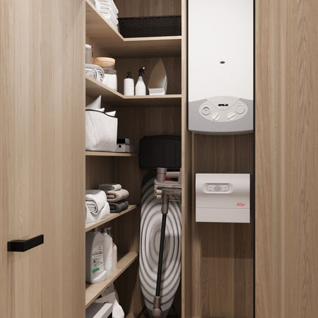 Цей інтер’єр — втілення сучасного затишку та сімейного тепла. Нічого зайвого — лише природні матеріали, м’які текстури, теплі відтінки дерева й світла. Простір, у якому легко дихати, жити, любити. Тут хочеться прокидатися без поспіху, проводити вечори разом і зберігати спокій попри темп зовнішнього світу. Дім, де все гармонійно — форма, функція, атмосфера.