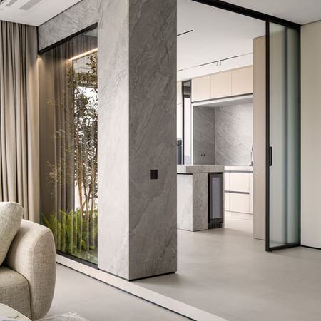 під камінь, що використовувалася на колоні у вітальні підкреслює витончену суворість і природну елегантність кожної