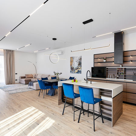 Цей проєкт — професійний та людський виклик. Будинок реалізовано лише за 1 місяць для родини ВПО, чий переїзд вимагав негайного рішення. Це результат неймовірної синергії: дизайнери, будівельники та постачальники працювали на межі можливостей, щоб подарувати людям дім і безпеку. В основі дизайну — «повітряний потік» та відкритий простір. Магістральне світло задає вектор руху, а консольні сходи й дзеркала додають невагомості. «Impulse» доводить: безкомпромісна якість можлива навіть у рекордні терміни.