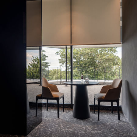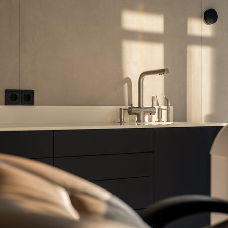 Рівень естетики повинен відповідати запитам преміального рівня. Запит клієнтів звучав: «уникати любої асоціації із стоматологічною клініко.» . Ми прагнули створити алюзію на місце відпочинку та спокою, на лобі готелю, де неспішно проходить своє життя, не дивлячись на шалений темп столиці.