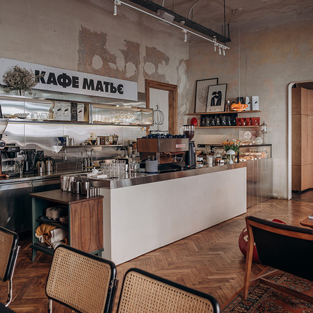 Кафе «Мат’є» — міський заклад у центрі Чернівців з відкритою демократичною атмосферою. Основна задача — створити зручний, функціональний простір для споживання їжі. Інтер’єр має бути простим, затишним і адаптованим до щоденного використання без зайвого пафосу. Поруч розташований невеликий офіс власників