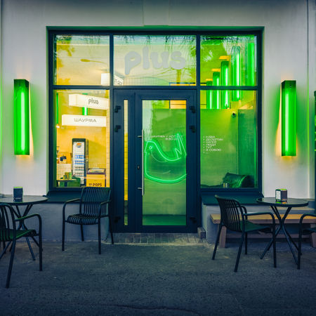 Заклад відкритий наприкінці 2023 року. Будівництво тривало з 2022 по 2023 рік. Завданням було створити вуличне кафе, що пропонує шаурму та хотдоги, з простою атмосферою, використовуючи максимально бюджетні та прості рішення. Багато матеріалів в оздобленні були використані повторно, зокрема вінтажні елементи, традиційна для України плитка "кабанчик" 70-х років виробництва, що сприяло швидкості будівництва, створенню атмосфери та відображало філософію виробництва. Світильники та меблі були виготовлені на замовлення. Зонування простору передбачало створення гостьової зони, зони для персоналу в межах загального залу, кухні та зони обслуговування.