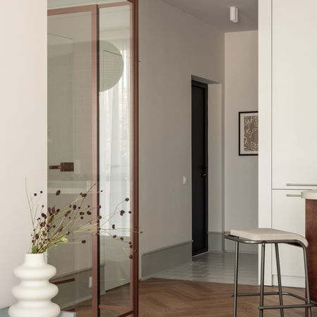 Квартира "Маленька душа" – це трансформація типового масового житла в оду світла і простору. Основною задачею було об’єднати подрібнені простори, зробивши їх перетікаючими та просторими. Продумане функціональне ядро з коморою та кухнею майстерно вписане кубом у простір. Прозора перегородка елегантно відділяє зону сну, візуально розширюючи об’єм студіо. Центром композиції є кухонний острів, який стає фокусом активного життя. Численні дзеркала створюють нові перспективи. Поєднання скандинавських та вінтажних мотивів надає інтер’єру аристократичного шарму. Цей проєкт – втілення бачення, що функціональність та естетика здатні перетворити звичне на виняткове.